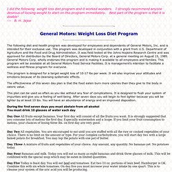 GENERAL MOTORS WEIGHT LOSS DIET The program was developed in conjunction with the grant from the US Department of Agriculture and the Food and Drug Administration. ... View Document